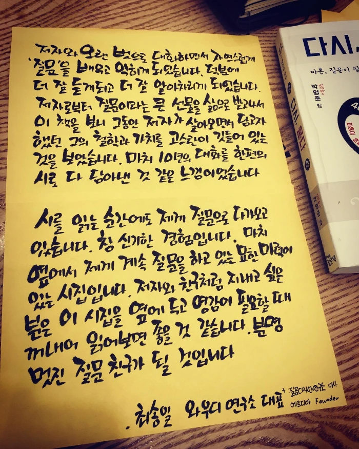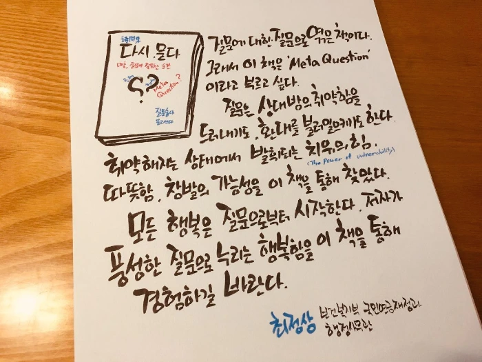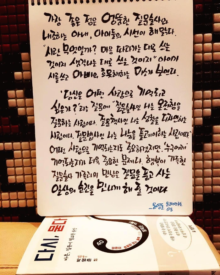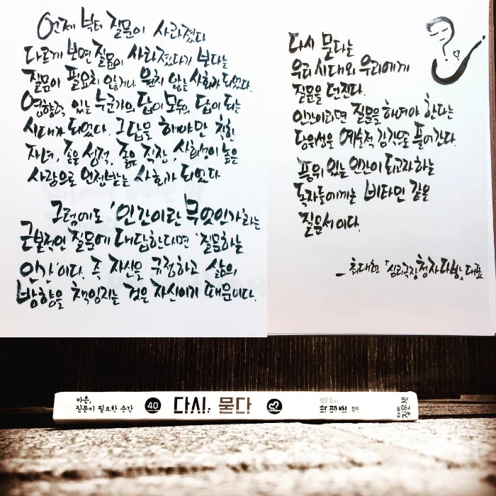 작가가 직접 쓴 다시 묻다 추천사 https://brunch.co.kr/@ilwoncoach/152
