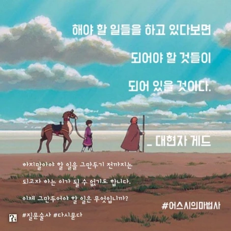 어슐러 K. 르 귄의 작품에 등장하는 대현자 게드는 ‘해야할 일들을 하고 있다보면, 되어야 할 것들이 되어 있을 것이다’고 말한다. 그러나 때때로 '하는 것' 만으로는 '되기'엔 충분하지 않더라. 하지말아야 할 일을 그만두기 전까지는 되고자 하는 이가 될 수 없기도 하다.