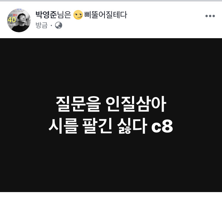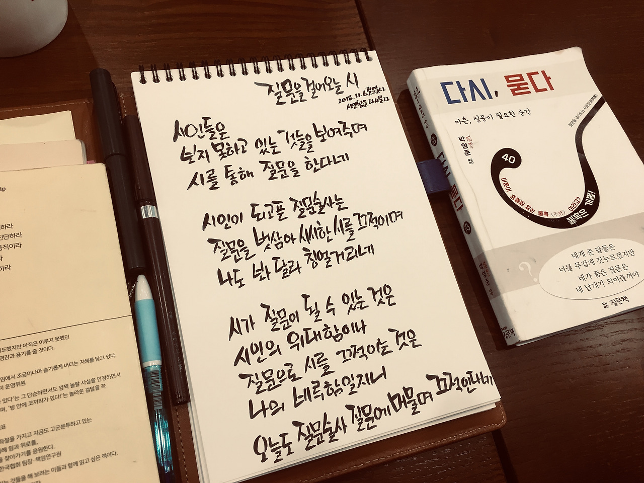 그동안 끄적인 시들을 모아서 시집을 내보겠다고 출판사들을 만나고 있다. 출간해보자는 곳이 네 곳이나 있었지만(질문카드 만들자는 출판사까지 포함하면 다섯 곳이나 되는구나), 출판사 대표님들이 상품가치(?)를 느끼는 것은 내가 끄적인 하찮은 시들보다, ‘질문’이라는 느낌을 받곤 한다.