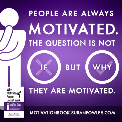 사람들에게 동기부여가 부족하다고 지레짐작하는 것은 어느때를 비롯하고 잘못된 생각이라고 수전은 말한다. 단지 당신이 동기부여된 요인과 다른 방식으로 그들이 동기부여되어 있을 뿐이다.