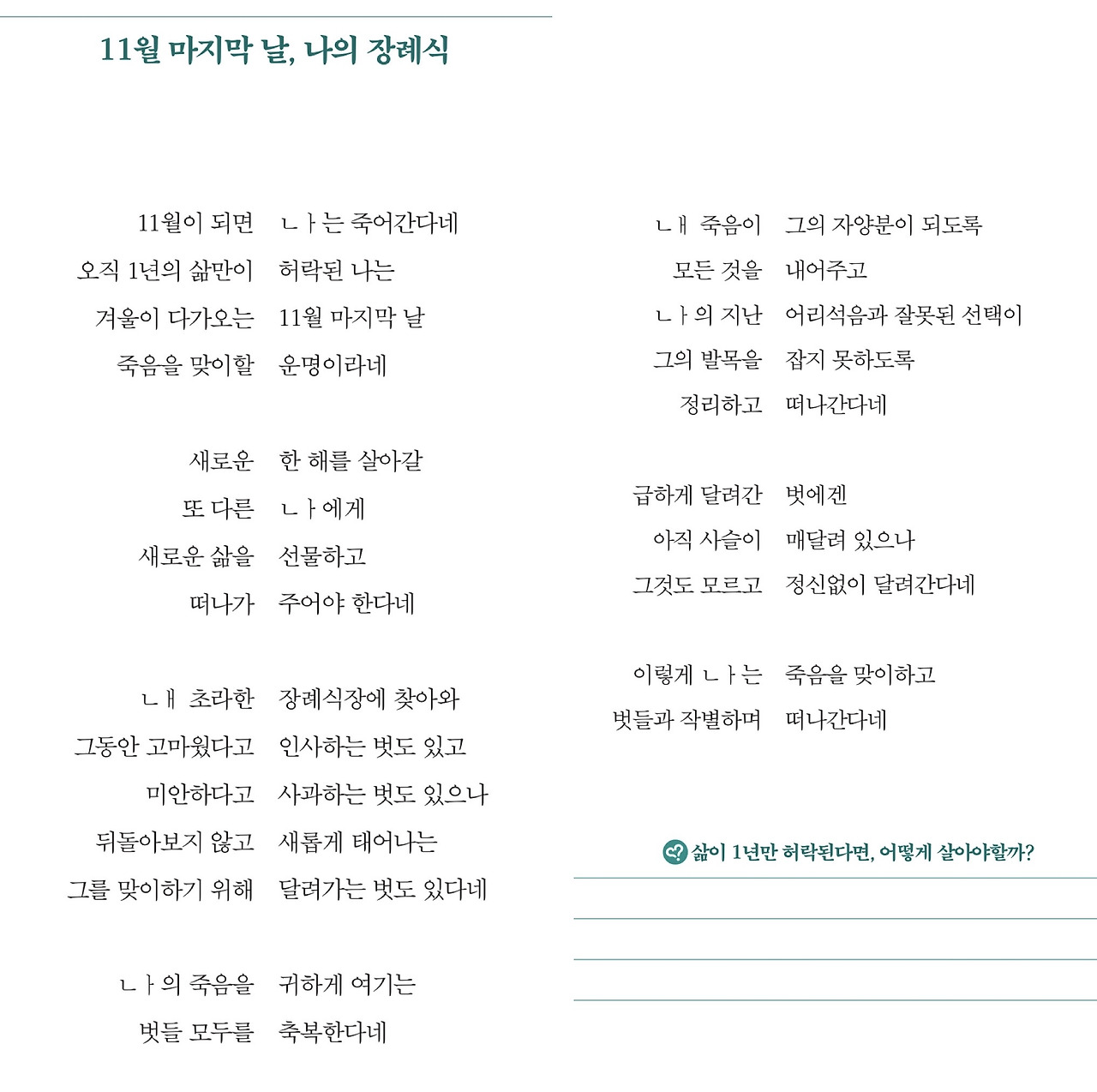 삶이 1년만 허락된다면,