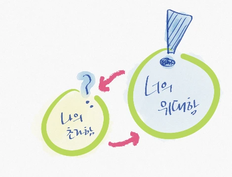 자신의 위대함을 마음껏 드러내는 사람을 만나면, 그의 위대함 앞에서 내 자신의 초라함이 더욱 두드러지기 마련이다. '내가 위대해지려는 모든 노력들'이 '우리의 위대함'을 위태롭게 한다. 나와 너는 우리라는 관계로 엮여 있다.