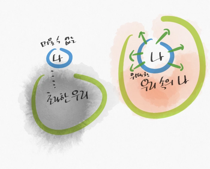 우리의 관계가 좋아지면, 우리 안에 속한 나도 좋아진다. 우리의 관계가 훌륭해지면 우리안의 나는 위대해질 가능성을 획득한다. 그 위대한 우리는 또다른 훌륭함을 잉태하고, 출산하고, 양육한다. 위대한 우리는 나와 너 모두에게 커다란 선물이다.