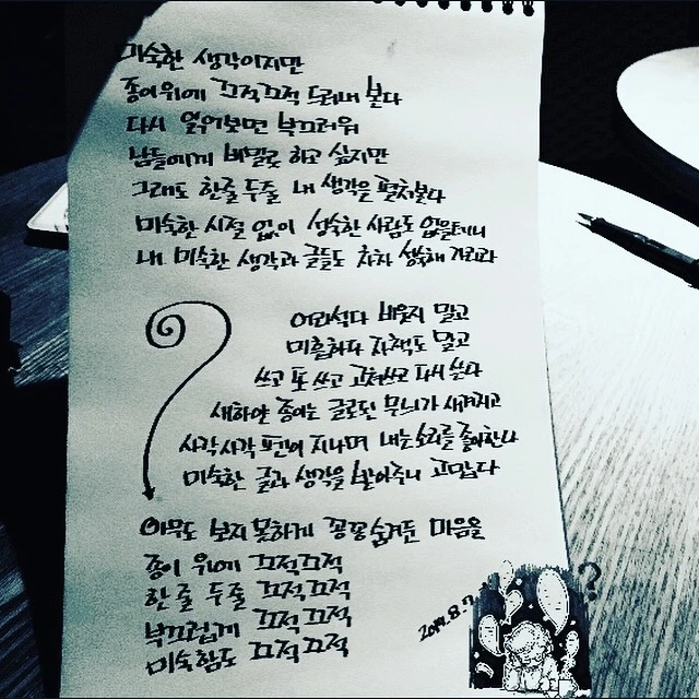 종이 위에 잉크의 무게를 담아 꾹꾹 눌러쓴
