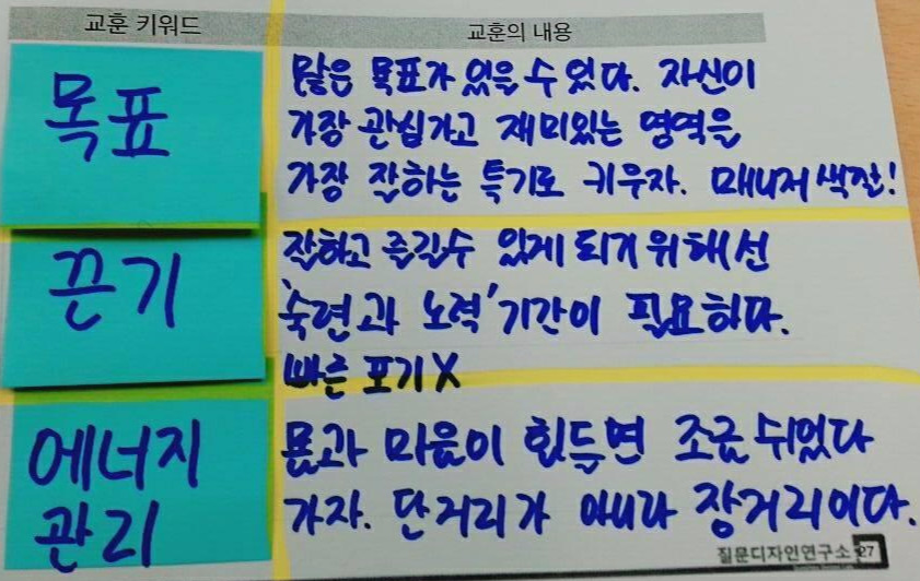 삶의 교훈을 키워드와 간단한 문장으로 기록해보시길 권합니다.