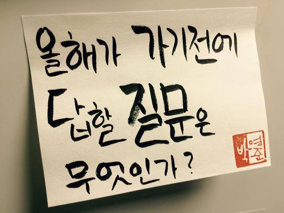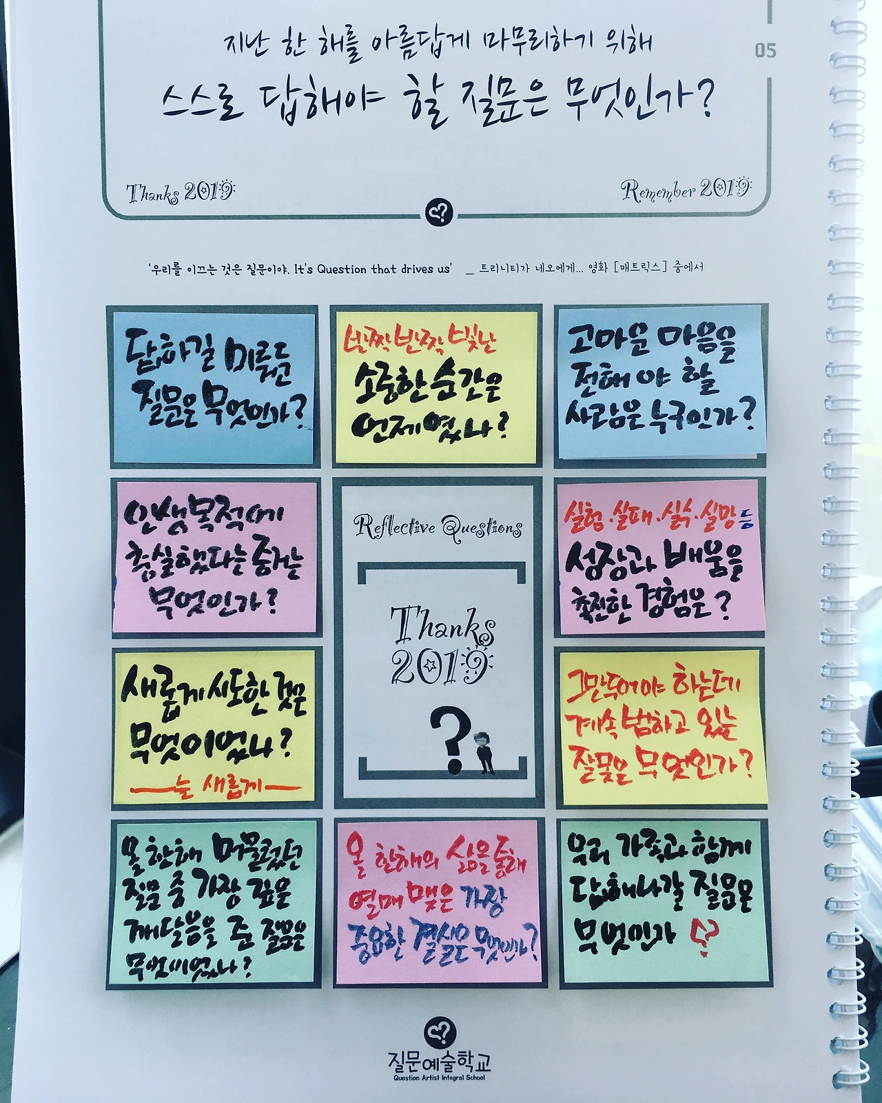 모든 질문에 답할 필요는 없습니다. 올해가 가기전 여러분에게 필요한 질문은 무엇인가요? 몇가지 도움되는 질문을 선택해 정리해 보시길 권합니다.