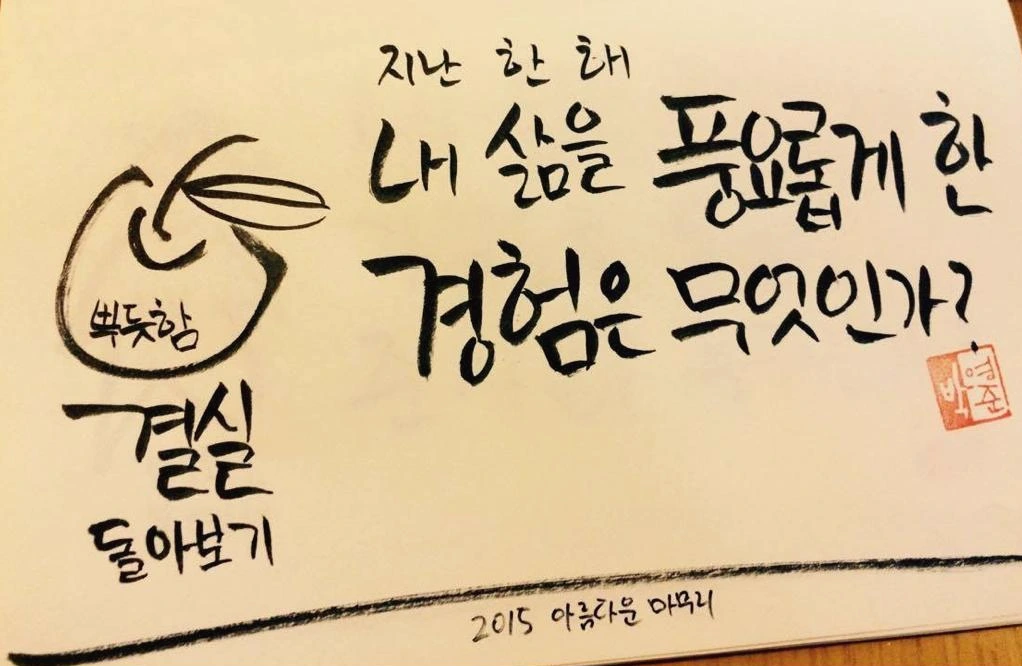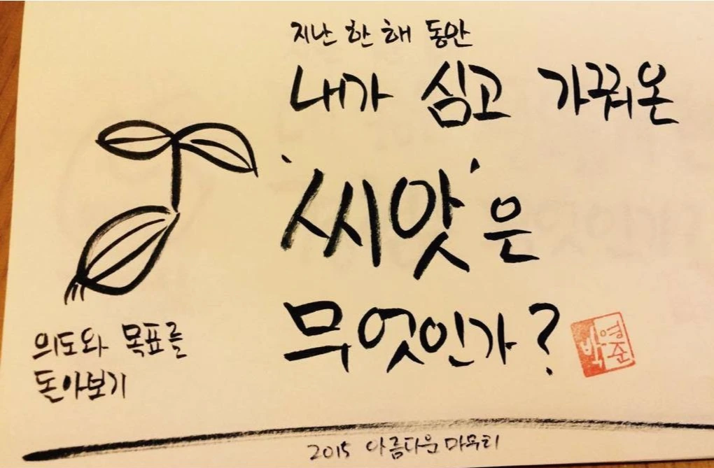 3) 감사하기 : 삶을 돌아보다보면, 자신의 삶이 타인에게 의존해 있음을 자연스럽게 깨닫게 됩니다. 올 한해 감사함을 기억하고, 음미하고, 표현하기를 권합니다.