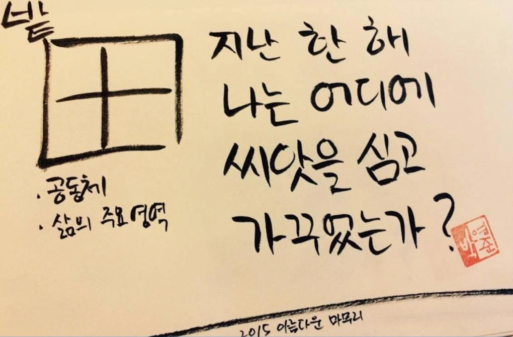올해에는 텃밭 가꾸기를 하면서 소중한 깨달음을 많이 얻었습니다. 어디에 씨앗을 심었나요? 여러분의 소중한 씨앗을 심은 밭은 어디입니까? 회사일 수도 있고, 학교일 수도 있고, 여러분의 가정일수도 있으며, 또는 여러분의 중요한 삶의 영역이나 역할들 일수도 있습니다.