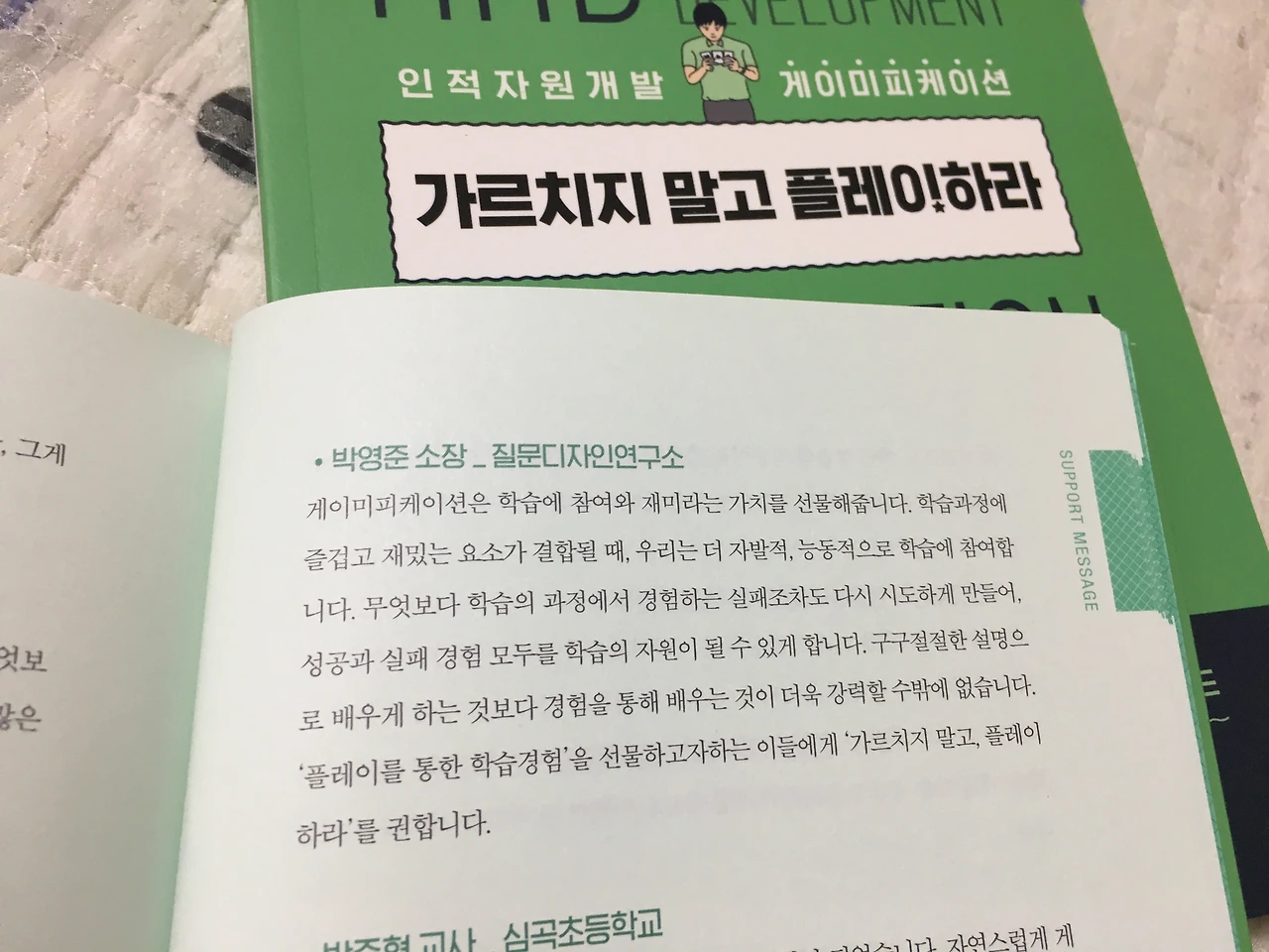 ‘가르치지 말고 배우게 하라’는 정강욱 대표의 러닝 퍼실리테이션 과정에 참여하고, ‘가르치지 말고 플레이하라’는 김상균 교수님의 게이미피케이션 출간 기념 특강에도 다녀왔다.