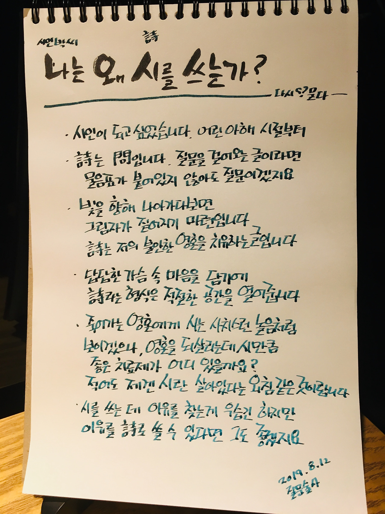 시를 쓰는데 이유를 찾는 게 우습긴 하지만....