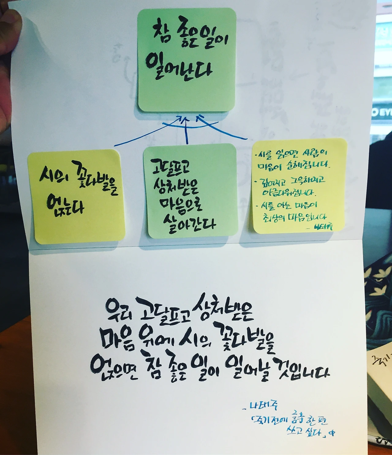 제가 고민하고 디자인했던 질문들 만큼이나 제가 쓴 시(詩)도 사랑받을 수 있길 바랍니다. 단 1명이라도 제 어린아이 걸음 같은 시를 읽고, 자신의 삶에 질문을 걸 수 있다면, 그것으로 충분할 것 같습니다.