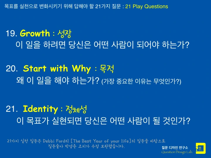 실천을 촉진하는 질문 (21 Play Questions)