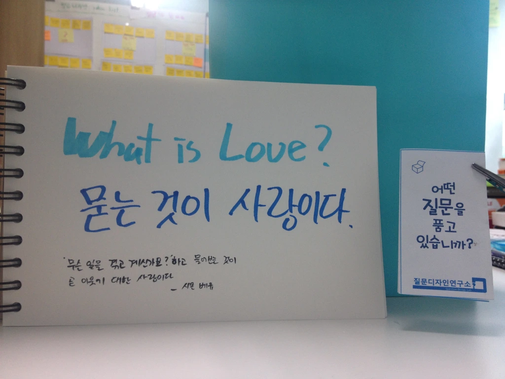 "유 아스크 미, 아이 아스크 유. 디스 이스 라부(You ask me, I ask you. This is love)."