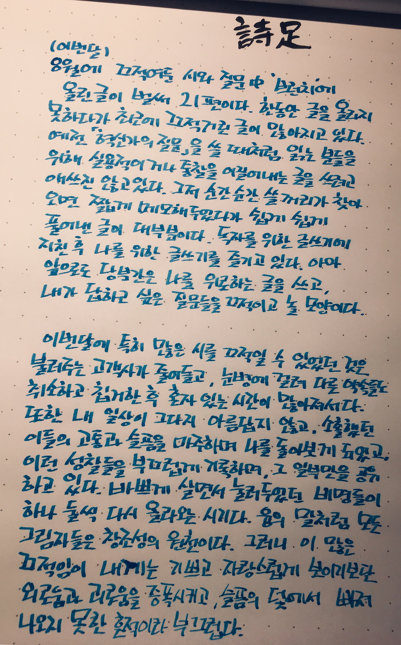 오늘도 외롭게 시를 쓰고, 괴로워 질문을 만들며, 나의 삶을 다시 묻다.