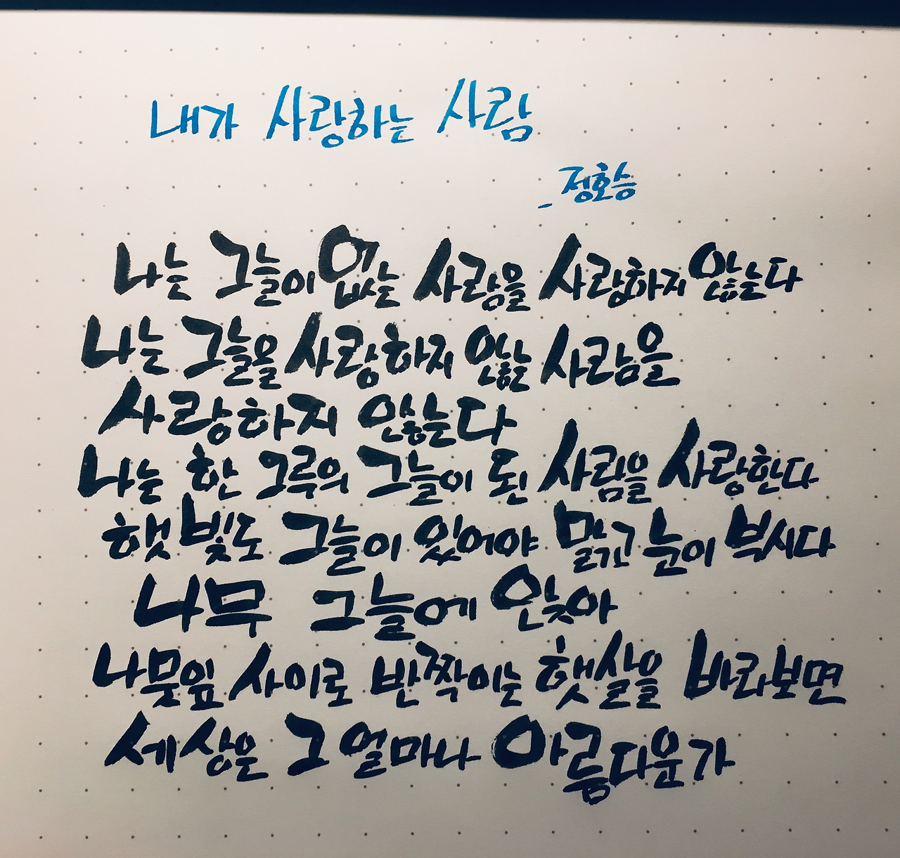 ‘내가 사랑하는 사람’이라는 시 한편이