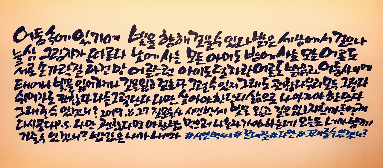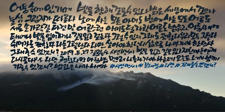 ‘어둠 속에 있기에 빛을 향해 걸을 수 있다’는 문장 하나에 걸려넘어져, 꼰대질 같은 시 하나 토해낼 수 밖에 없었다. 다만, 나도 어둠 속에 있거나, 그림자에 사로 잡혀 있다는 것을 고백할 수 밖에 없기도 하고. 답하지 못한 질문을 마주하고 아직도 마음은 너덜너덜하다.