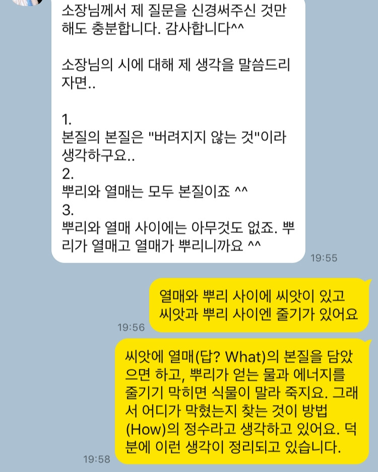 그래서 난 씨앗 하나가 귀하다고 느낀다. 추상적 답들이기에 풀어서 이야기해야겠지만, 학습자의 질문이 나의 덜 여문 생각에 파문을 던졌고, 명확함에 이르러 가는 중이다.