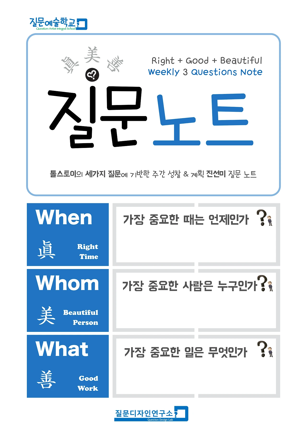 톨스토이의 질문을 기반으로 만든 진선미 주간질문노트 PDF파일 공유합니다