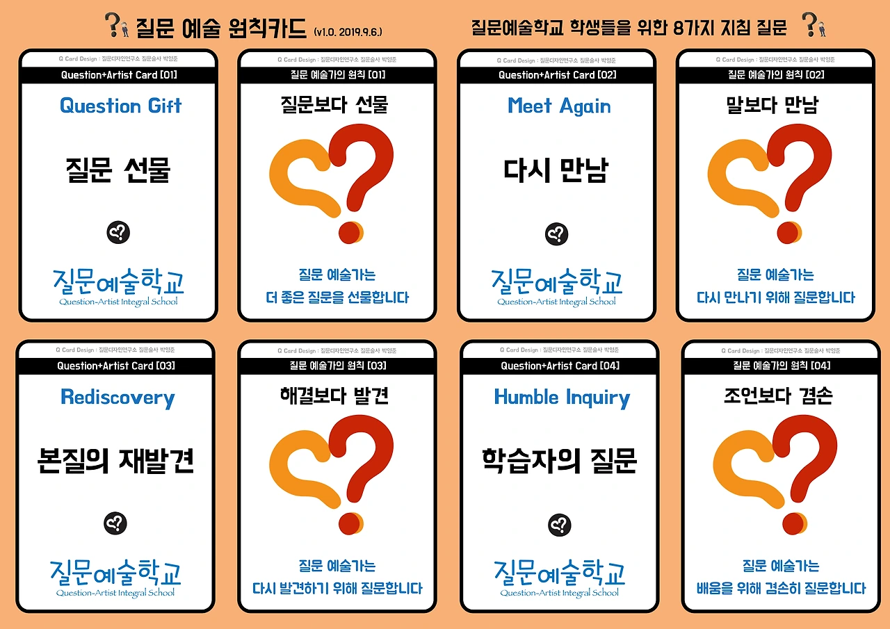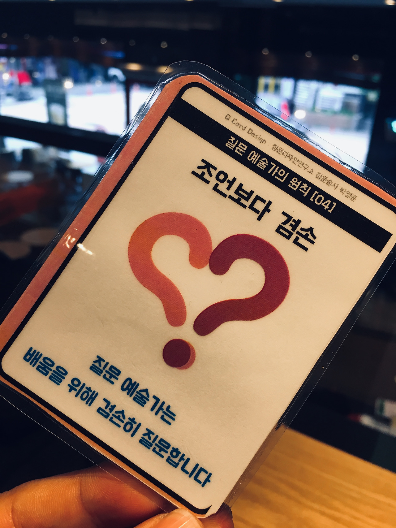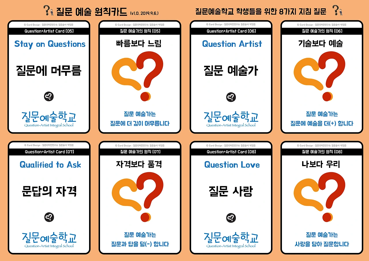 이번에 제작하려는 질문성찰 지침카드는 질문공부 입문자용이라기보다는(그런 질문카드는 이미 많아서요) 질문의 중수(?)를 고수답게 질문하는 사람(?)으로 이끌어보려는 심뽀가 숨어있습니다.