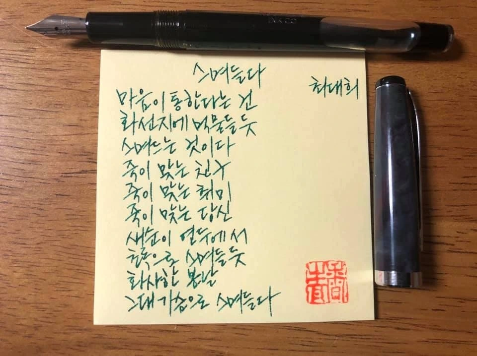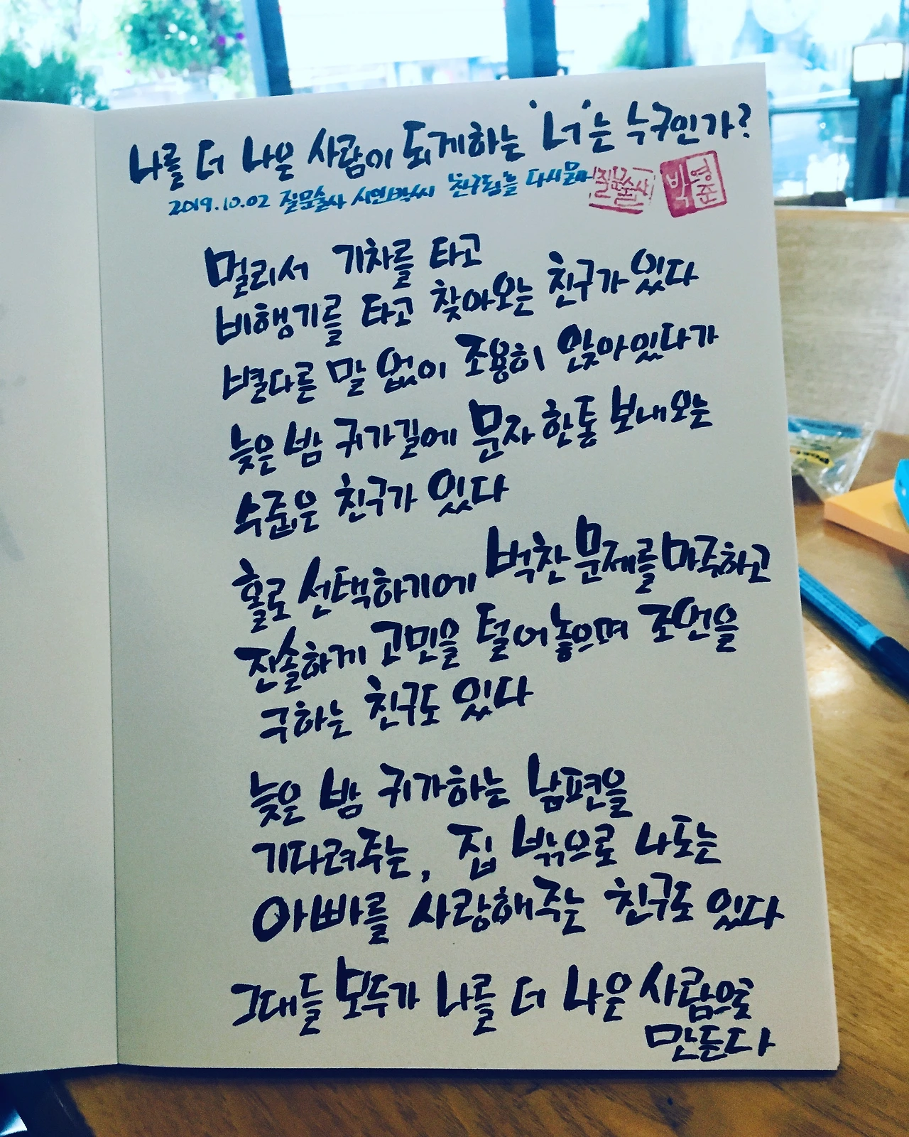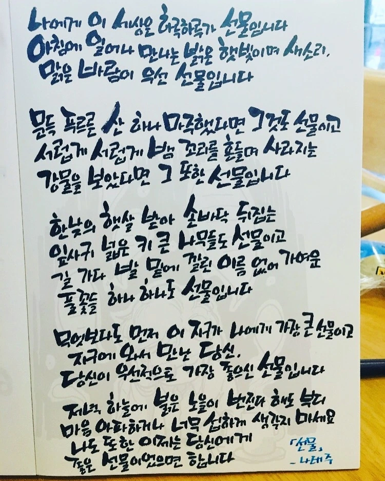 PS. 덧붙여 제가 사랑하는 시인 나태주 님의 '선물'을 손으로 옮겨 적어 보내봅니다.