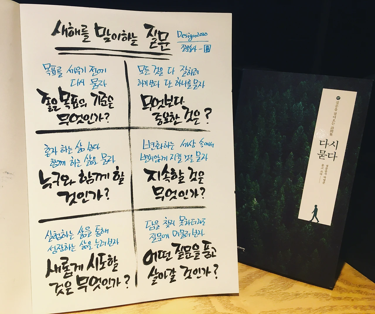 위 세 가지 기준 또한 못된 꼰대 아재의 궁시렁거림일 수 있습니다. 그냥 적어보는 것만 해도 충분히 좋습니다. 새해를 맞이해 많은 이들은 목표를 세우지만, 저는 질문을 끄적이며 노는 것을 더 좋아합니다. 목표를 향해 달려가는 이도 멋지지만, 지나온 길 돌아보며 잠시 머무는 것도 좋다고 생각합니다. 부족한 자신을 비난하고 극복하려 하기 위해 목표에 집작 하기보다는, 쉽게 답할 수 없더라도 질문에 머물며, 부족함까지도 온전히 품어가는 삶을 살아갈 수 있었으면 합니다.