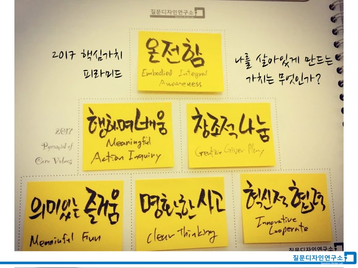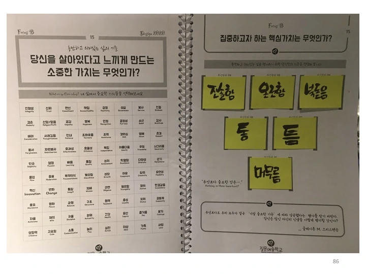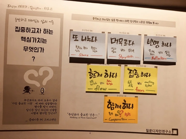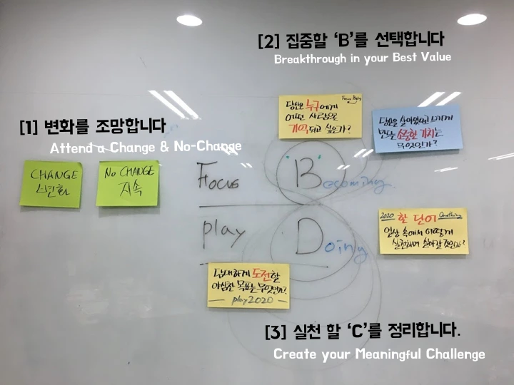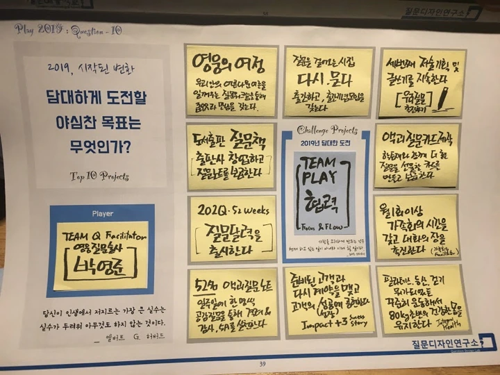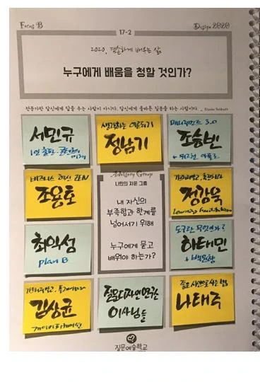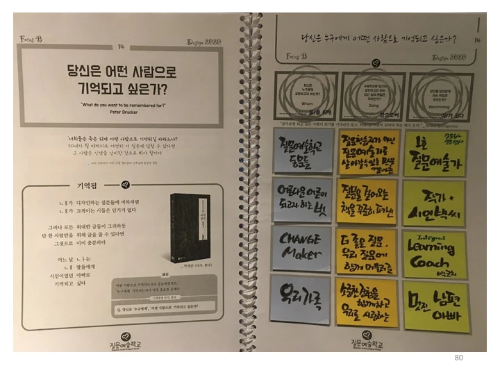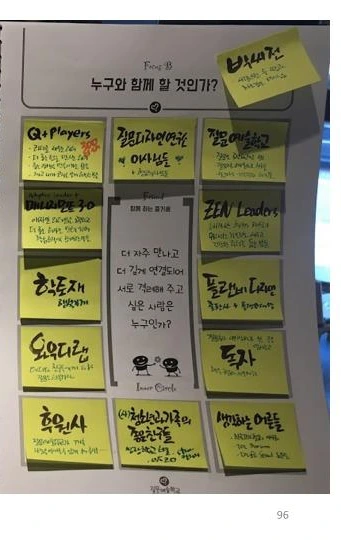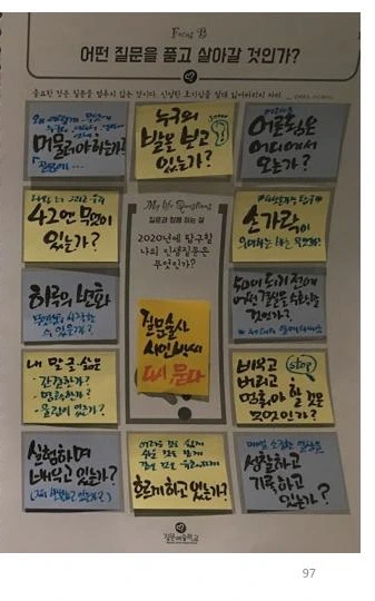 1월까지 여러 차례 수정해서 작업할 예정입니다. 그래서 가능하다면 포스트잇에 답을 기록하시길 권합니다. 그래야 쉽게 수정할 수 있거든요.