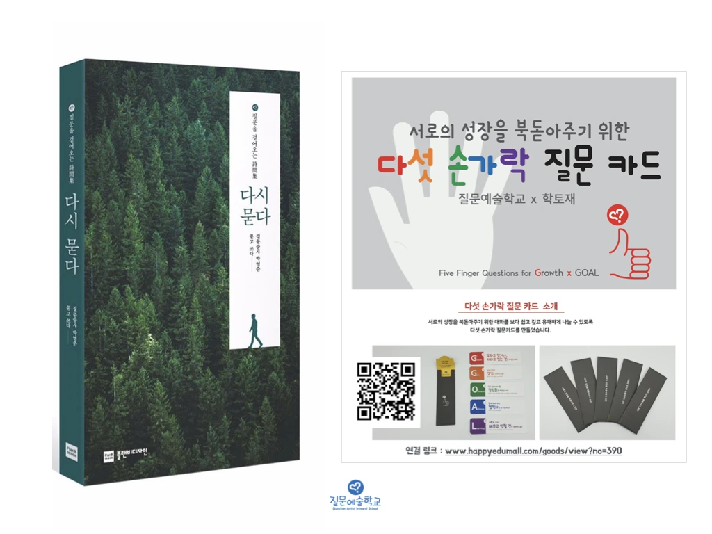 이 질문노트는 조건 없이 무료로 공유하셔서 활용하셔도 됩니다. 다만 유용하게 활용하신 후 제게 약간이라도 고마운 마음이 드신다면, ‘더 좋은 질문을 디자인하고 나누는 일’을 격려하는 차원에서, 저의 시집 <다시, 묻다> 혹은 <다섯 손가락 질문 카드>를 구매해주시면 큰 힘이 될 듯합니다.