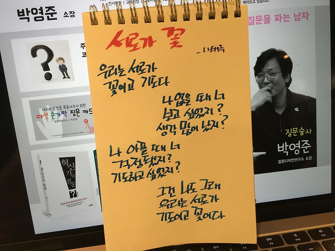 나태주 시인의 <서로가 꽃>이란 시 한 편 옮겨 적었습니다.