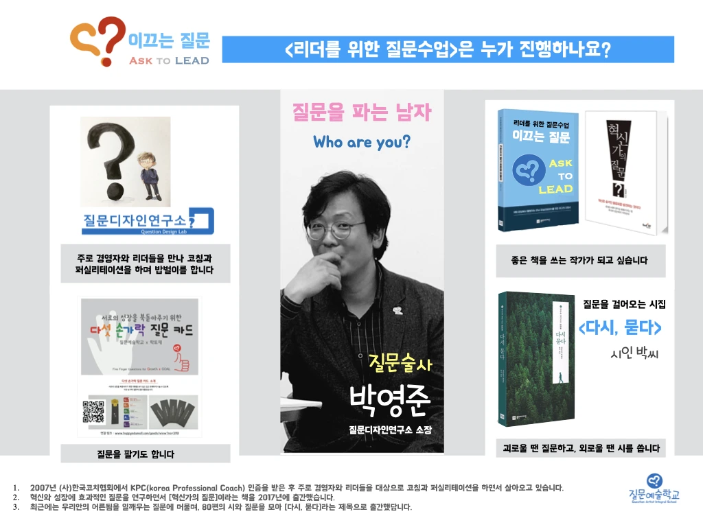 '리더를 위한 질문수업'에 함께 참여 해 주실 여러분 모두에게 고마운 마음 전합니다.