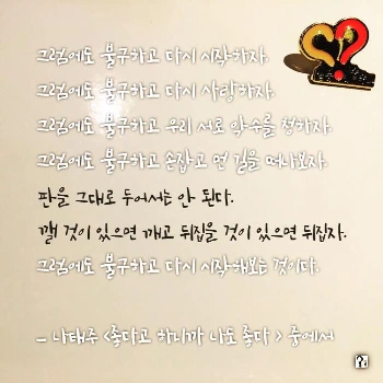 아침에 시를 읽고 나누는 온라인 단톡방 ‘#시담쓰담’에 나태주 시인의 글을 올려두었다. 풀꽃 시인의 글은 내게 늘 질문을 품게 한다. “다시 시작하고 싶은 것이 있다면, 그것은 무엇입니까?”를 주제로 간단한 시 창작 놀이를 시작해보았다.