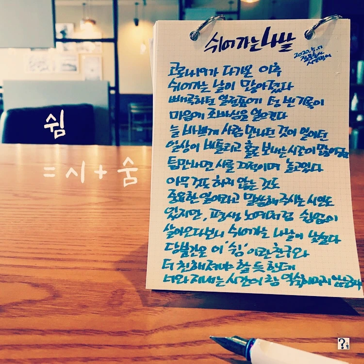 코로나 19가 다가온 이후 쉬어가는 날이 많아졌습니다.
