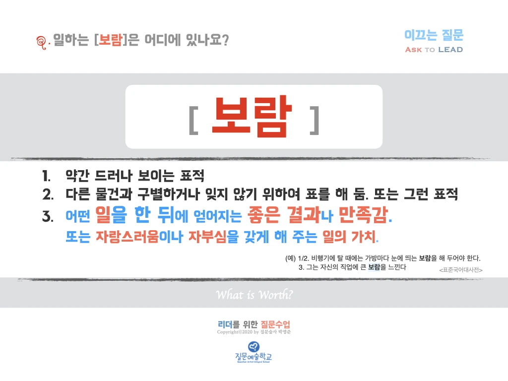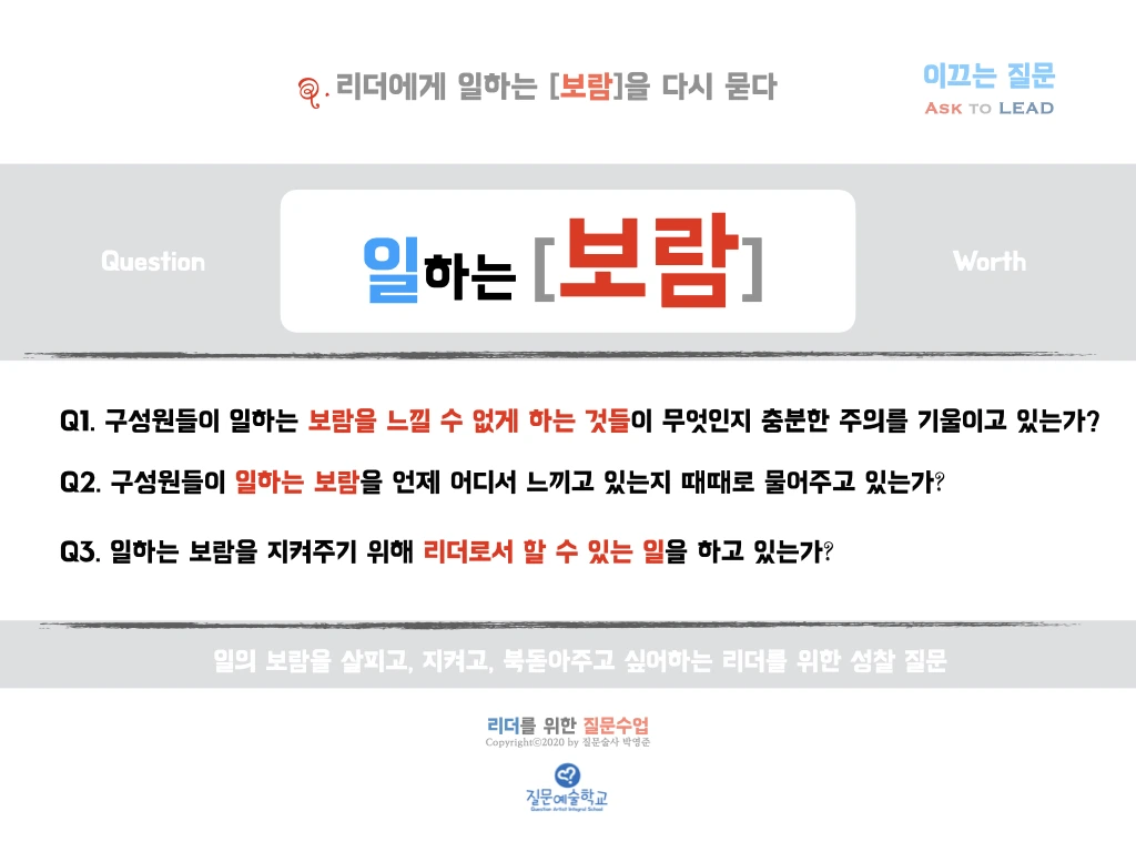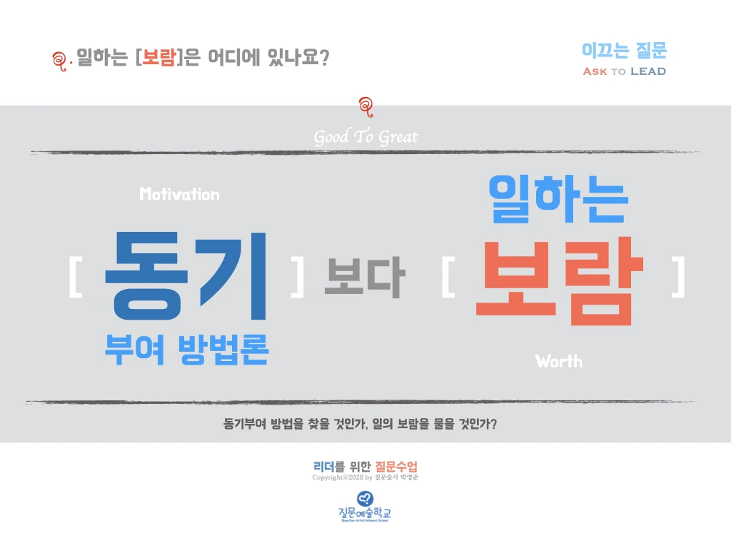 리더를 위한 질문수업 _ 동기부여 방법 vs 일하는 보람