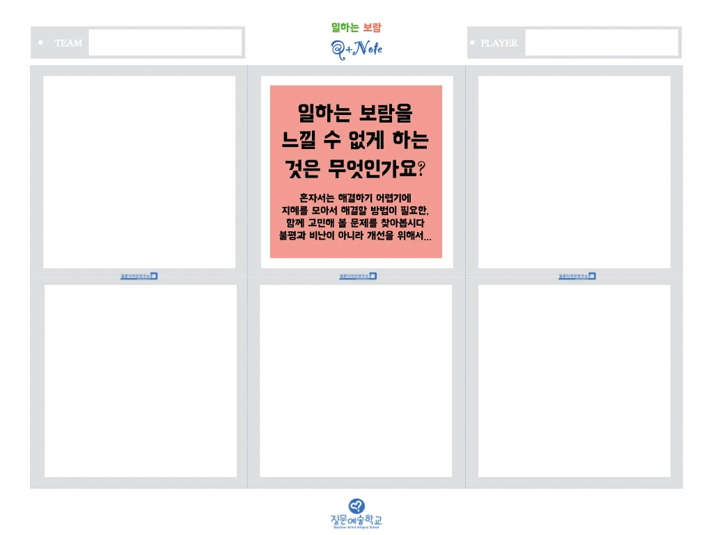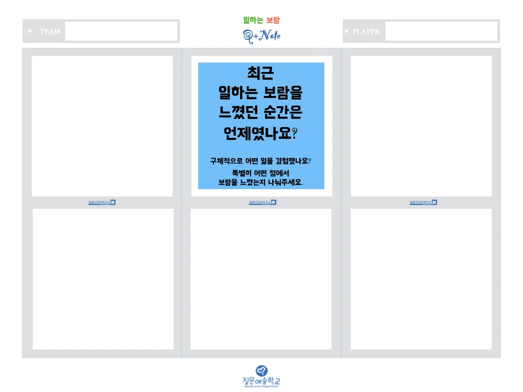> 실습 : 구성원들에게 일의 보람을 묻기 (팀 토의용 질문노트 노트 다운로드)