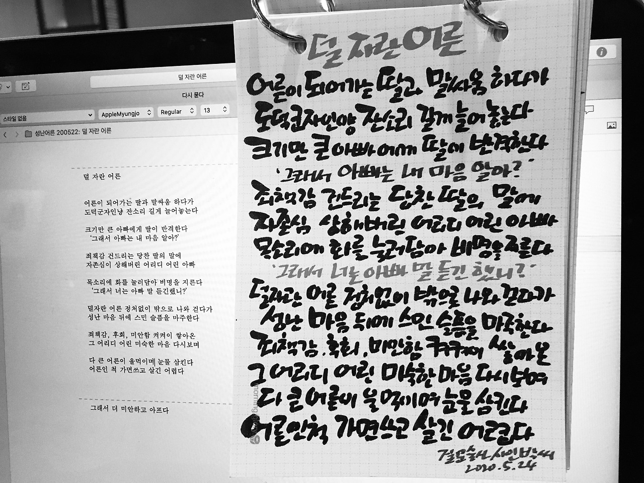 詩足 : 제가 진짜 어른인가 돌아보면 늘 부끄럽습니다.