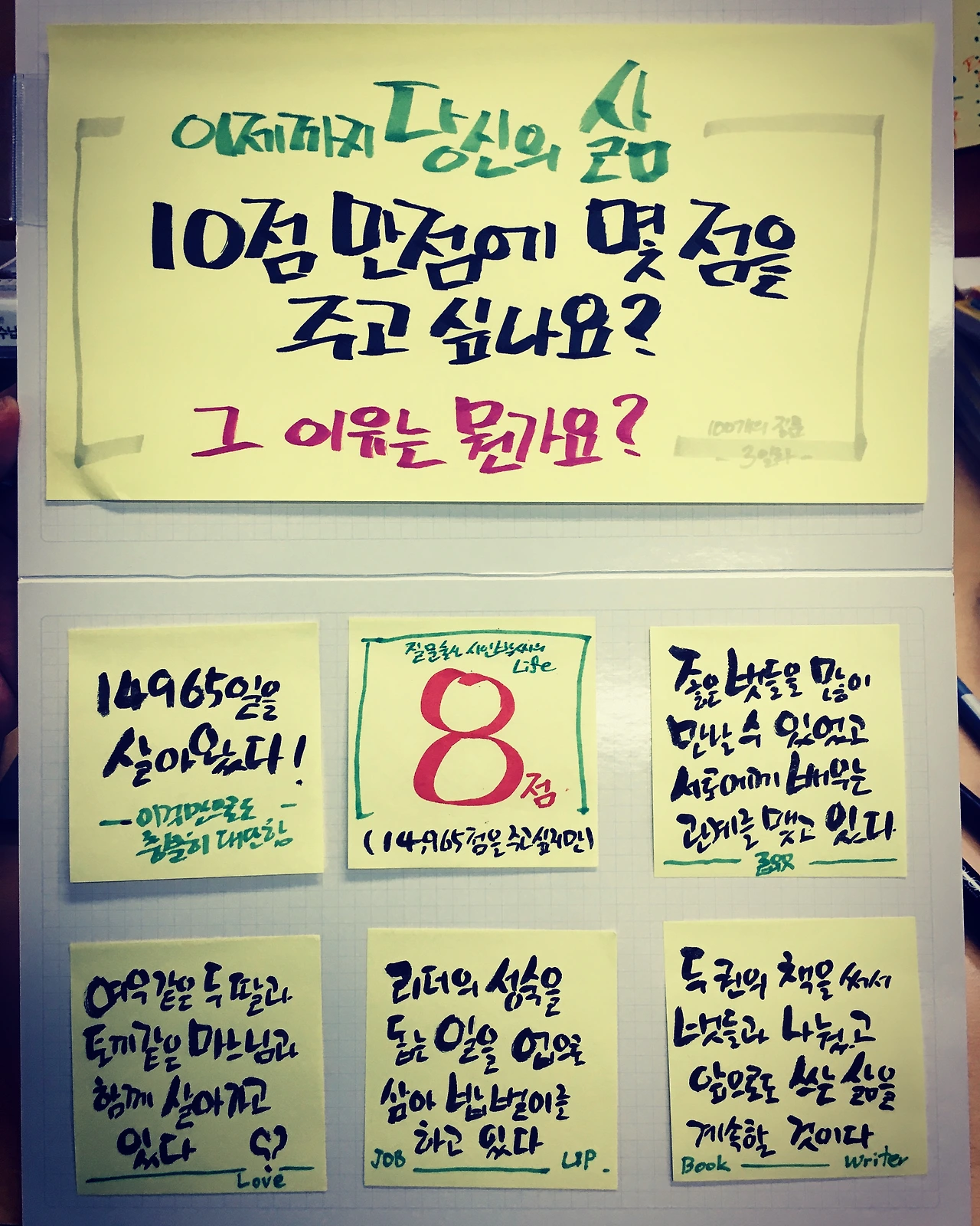 : 제가 삶 속에서 마주한 좋은 질문, 함께 고민했으면 하는 질문을 적어서 SNS에 공유할 때가 많습니다. 개인적으로 만나서, 어떤 질문을 품고 살고 계신지를 묻고, 더 고민해보셨으면 하는 질문을 끄적여 사진으로 촬영해 보내드릴 때도 있습니다. 명색이 질문디자인연구소 소장인데, 선물 같은 질문을 나눌 수 있어야겠지요. 작년 말에 출시된 <다섯 손가락 질문 카드>를 구입해주시면, 제게 5% 정도 인세가 지급됩니다. 매월 적다면 적은 금액이지만, 이런 돈이 통장에 들어올 때마다 보너스를 받는 기분입니다. 돈보다는 누군가 제가 만든 질문을 활용해주는 것을 확인할 수 있어서 그런 듯합니다. 앞으로도 더 좋은 질문을 다양한 형식으로 나누며 살아가고 싶습니다.