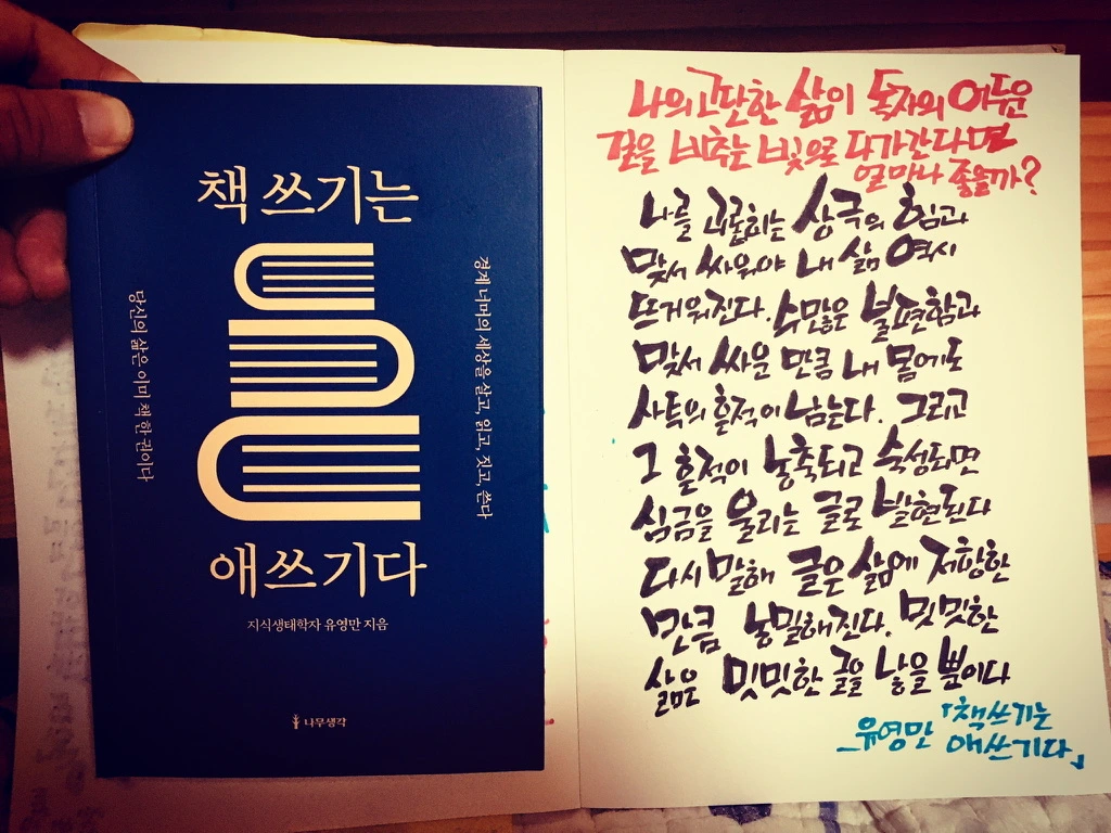 세 번째 책 쓰기가 막힌 후에 다시 글쓰기를 시작하고 싶었습니다. 유영만 교수님의 신간 <책쓰기는 애쓰기다> 함께읽기 모임이 시작된다는 반가운 소식에 참여하게 되었습니다. 오늘은 첫날이라서 프롤로그와 1장을 읽으라는 미션을 받았습니다. 이미 읽은 글이지만, 함께 읽기에 참여하신 분들과 흐름을 맞추려고 다시 읽고 있습니다. 개인적으로 독서하는 장면을 촬영해 (손만 나옵니다 ^^) 유튜브에 올려보고 있습니다. 일상의 일도 수행해야 하니, 매일 작업할 수는 없겠지만, 그동안 실험적으로 만든 몇 개의 영상도 함께 올려둡니다.