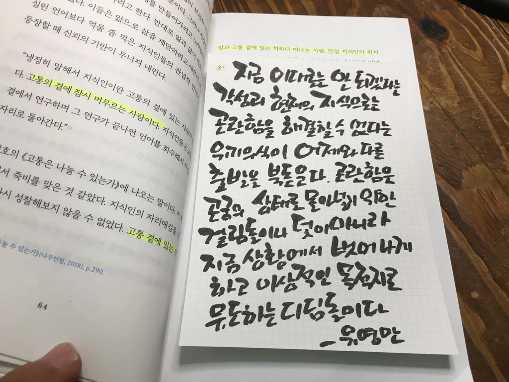유영만 교수님의 신간 _ 프롤로그와 1장을 손으로 읽어보았습니다