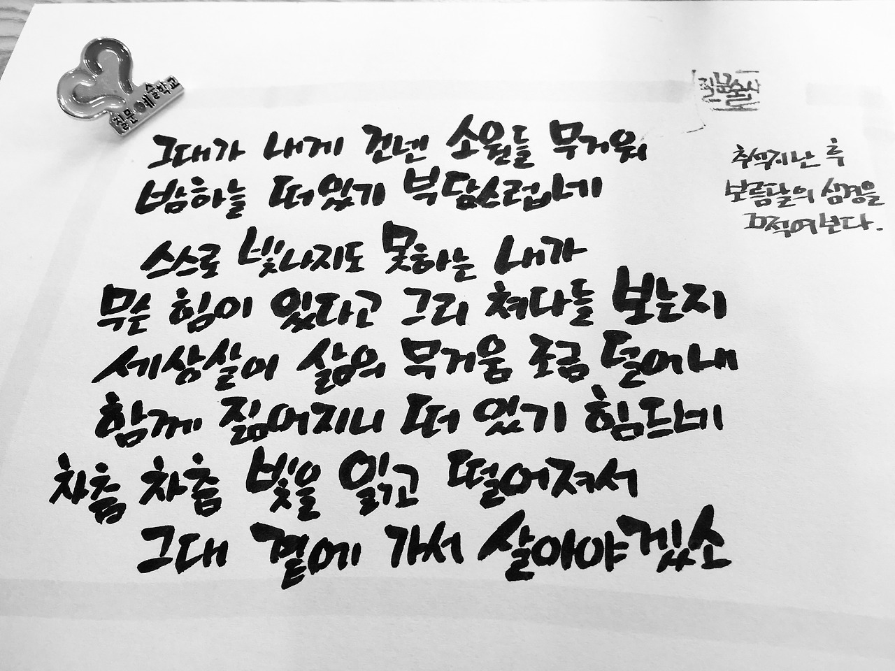 ‘아무래도 / 내일부터 차츰 / 그대 생각 덜어내야지...’