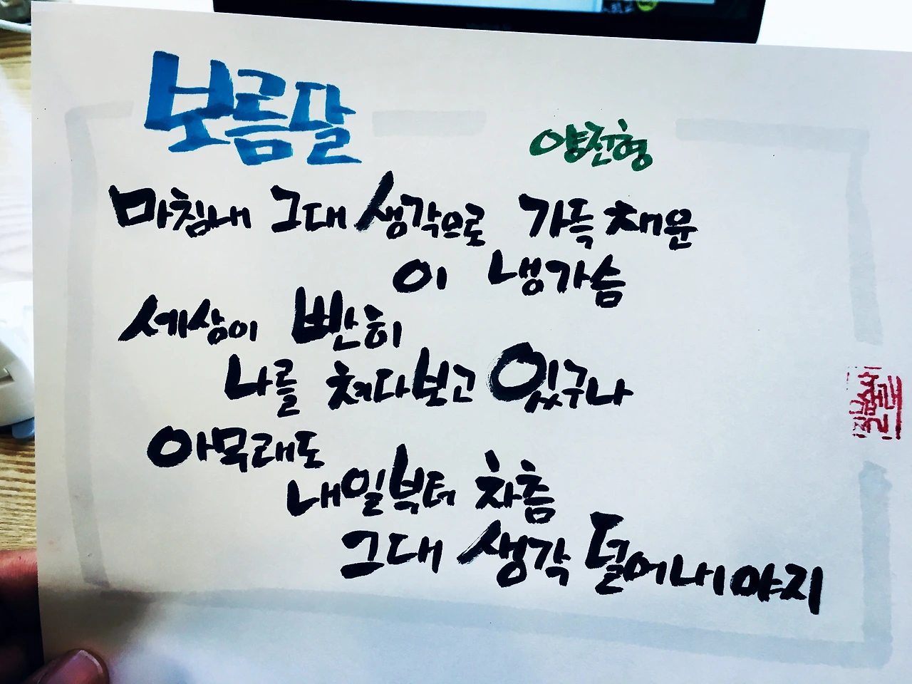시를 쓰는 것은 마음속 사랑을 키워내는 일인 듯합니다. 아직도 작은 새싹이지만, 정성스럽게 키워내다 보면, 풍성한 그늘 제공할 수 있는 나무로 자랄 수 있겠지요. 그때가 되면 단 한 사람이라도 잠시나마 머물며 쉬어갈 만한 시집도 선물할 수 있는, 조금은 덜 부끄러운 시인은 될 수 있겠지요.