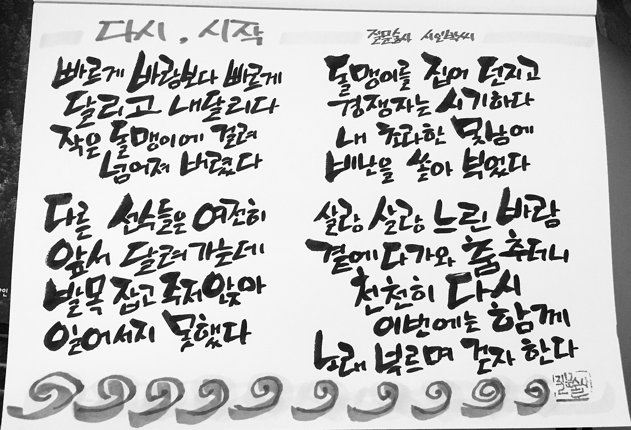 첫째가 그려준 그림에 머물다가 시시한 시 하나 남겨봅니다. 제 고향에서는 '돌멩이'를 '돌맹이'라고 부릅니다. 사전을 찾아보니 방언으로 나오더군요. '돌멩이'가 표준어이나, 일단 그대로 남겨둡니다. 엉켜버린 것 풀어내고, 첫 마음으로 다시 새롭게 시작하고 싶은 것이 누구에게나 있을 것 같습니다. 여러분에겐 다시 시작하고 싶은 것이 무엇일지 궁금합니다.