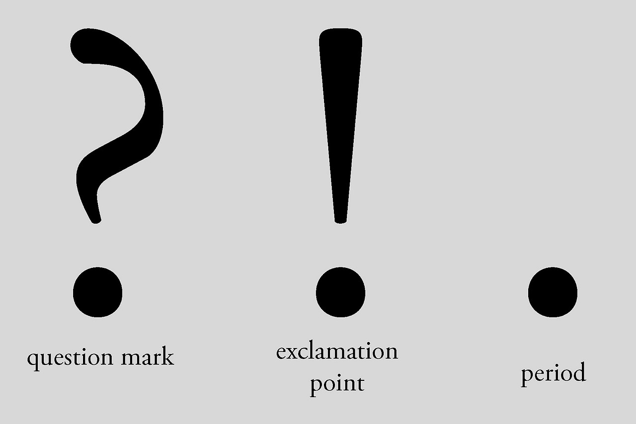 5) 맞춤법 개정안 전에는 현재 마침표라 불리는 온점(.) 뿐만 아니라 물음표(?)와 느낌표(!) 등 문장 마지막에 오는 문장부호를 모두 마침표라 불렀다. 온점(.)이 온전히 마친 것이라면, 물음표(?)는 대답을 기다리며 끝마친 것이고, 느낌표는 문장은 끝났지만 아직 마음에 정서적 여운이 남은 상태를 나타낸다. 어찌 되었건 당신이 무엇인가를 끝마쳐야 스스로 다시 시작하든, 다른 사람이 다시 이어서 시작할 수 있다. 일단 마침표를 찍고난 후 자신의 감정을 머물러 더 음미하고 싶다면 '마침표를 느낌표로', 다른 사람과 대화를 나누고 싶다면 '마침표를 물음표로' 변형시키면 된다.