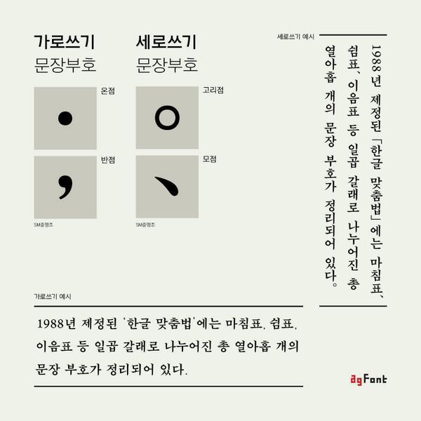 6) 세로쓰기에서는 마침표로 온점(. ) 대신 고리점(。)을 사용한다. 중국과 일본은 마침표로 고리점(。)을 사용한다.