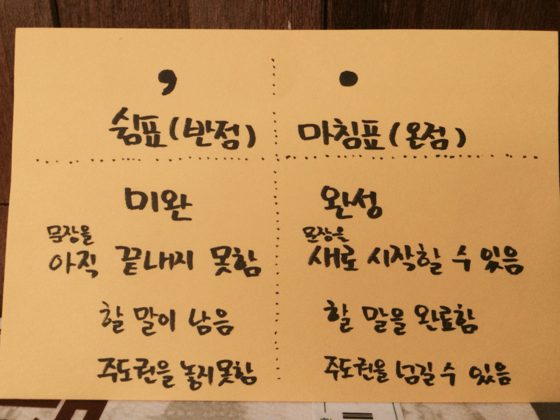 4) 쉼표로는 문장을 끝낼 수 없지만, 물음표나 느낌표, 그리고 온점으로는 문장을 마무리 할 수 있다.