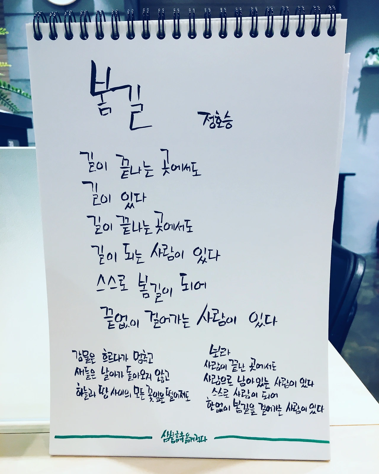 봄길이란 당신의 시를 읽고 또 읽습니다.