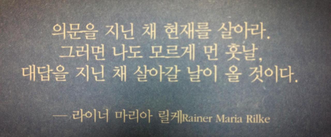 지금 질문에 따라 '살기' 바랍니다. 그러면 당신은 점차적으로, 미처 깨닫지 못한 상태에서, 언젠가 먼 훗날에, 살아가다가 답변과 마주할 날이 올 것입니다.