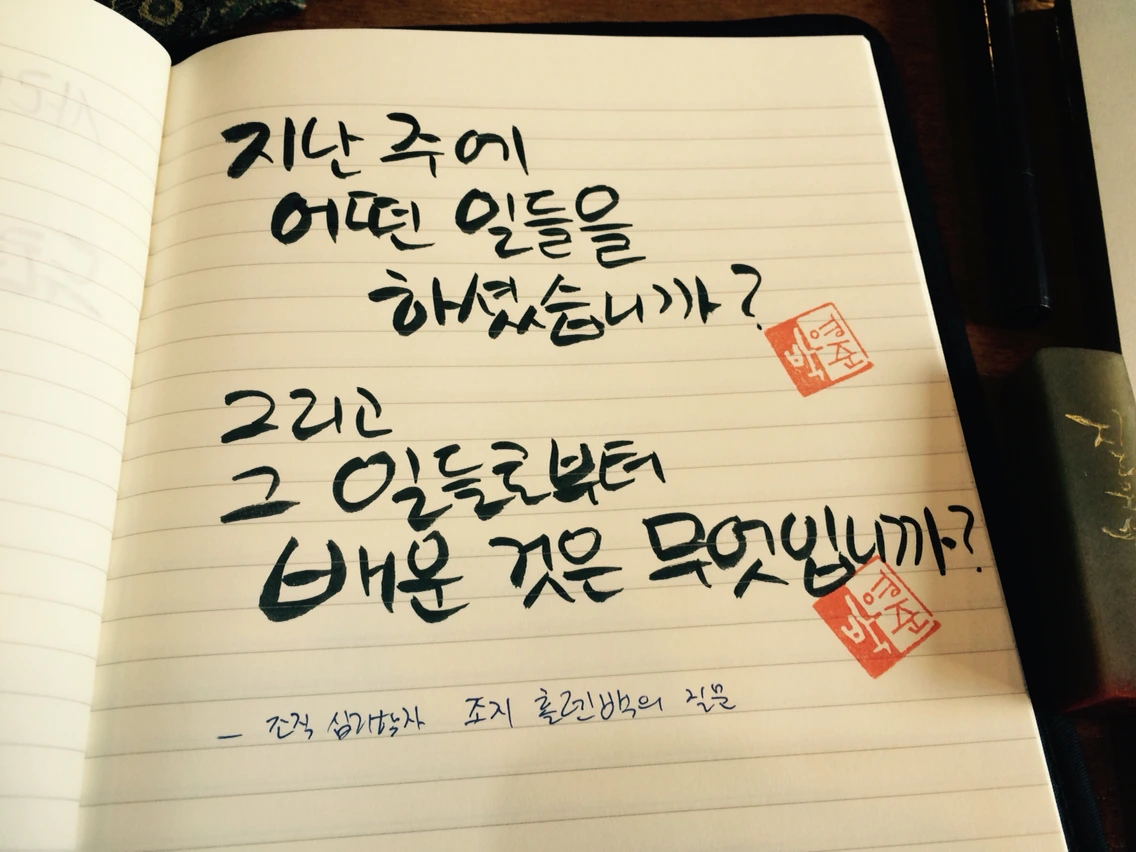 지금까지는 학습조직 모임이 끝나면 주로 '배운점 / 느낀점 / 실천할 점' 이 세가지를 정리해 보라고 권했습니다. 늘 해왔던 질문에서 탈피하여 성찰 질문을 조금 다르게 바꿔보았습니다.
