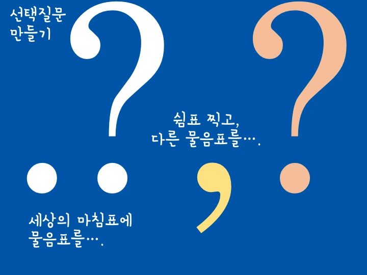 마침표나 물음표 뒤에 쉼표를 찍어두고, 뒤에 오는 어구 끝에 물음표를 달게 되면 어떨까?