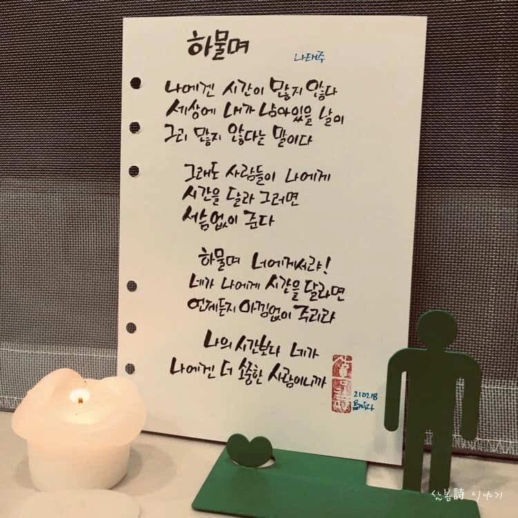 > 삼봄詩정원 팟빵에서 낭송본으로 듣기 https://www.podbbang.com/channels/1778522/episodes/24039843