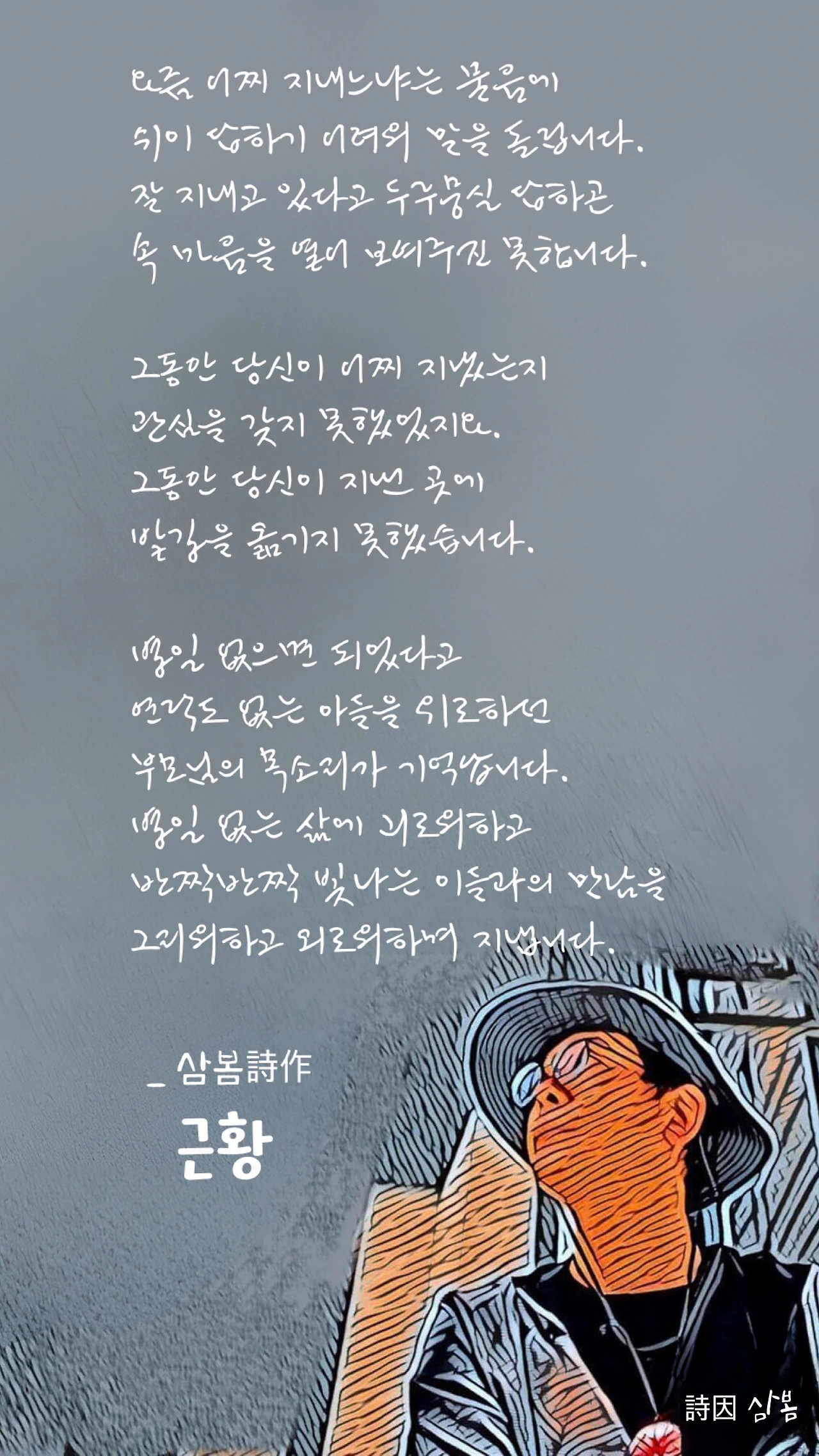 근황을 물어보는 지인에게 솔직하게 답하지 못하는 순간이 있습니다. 의례적으로 물어보는 것인지, 솔직하게 살아가는 이야기를 풀어놓아도 되는 것인지 헷갈리곤 합니다. 감정을 들어주는 것도, 감정을 드러내는 것도 여전히 서툰 제 자신을 바라봅니다. 이렇게 쌓인 감정의 찌꺼기를… 오늘도 시라고 우기며 끄적여둡니다.