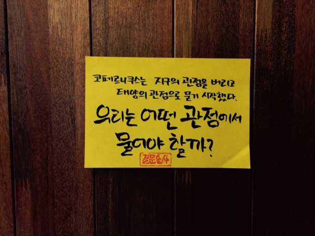 관점이 달라져야 질문이 달라진다. 코페르니쿠스는 '종교의 관점-지구 중심의 관점'을 버리고, '진리의 관점-태양 중심의 관점'에서 묻기 시작했다. 우리는 어떤 관점에서 물어야 할까?